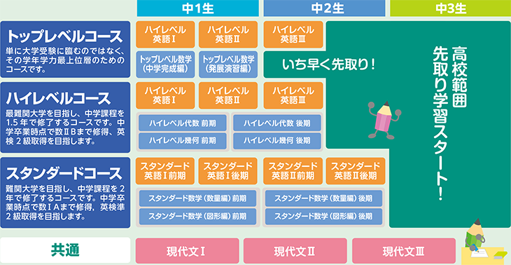地域トップ高校合格を目指し、中学課程を2年半で修了するコースです。