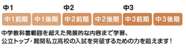 難関私立高校合格を目指し、中学課程を2年半で修了するコースです。